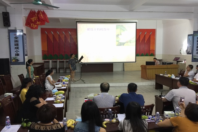 [林运 稿]9月10日晚上,吴川电大全体干部教职工和所属春晖小学的教师代表齐聚一堂,通过举行座谈会、才艺表演、文体游戏等别开生面的活动形式,热烈庆祝教师节。