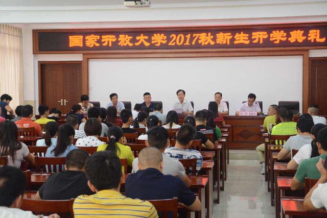 [遂溪电大 陈 峭报道]9月30日上午九时,遂溪电大8号楼一楼大会议室座无虚席,249名国开新生参加了2017年秋季简短而隆重的开学典礼。大会由分管教学的王春副校长主持,梁广仁校长及其他班子成员、部分科室领导、班主任、科任老师一同出席典礼。会上,梁广仁校长作了热情洋溢的讲话。他首先代表学校向新学员表示热烈欢迎和衷心祝贺,接着向新学员介绍了国家开放大学(电大)的历史沿革以及学校的基本情况,最后对新学员提出几点殷切期望。他提出:第一,要珍惜宝贵的学习机会第二,要培养自主学习的习惯第三,要自觉遵守各项规章制度第四、要坚持诚信学习、诚信考试,自觉维护国开学员的荣誉和形象。随后,教务处陈峭主任向新学员介绍了新班班主任和布置新学期学习工作,简述国开学习、作业、考试、缴费等流程,希望学员树立信心,熟悉流程,掌握规律,开展有效学习。会后,科任教师还给新生进行国开入学指南教育。据统计,本校今季共招生249人,其中本科51人,专科198人。