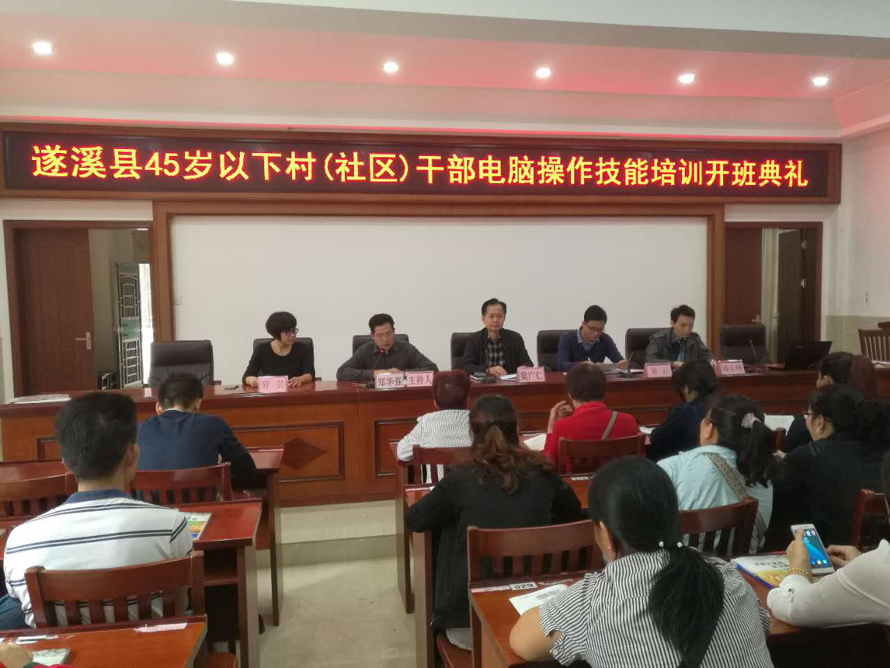 开班典礼上,遂溪电大校长梁广仁表示,根据市委组织部和市电大的要求,此次培训由县委组织部与遂溪电大联合举办,旨在提高我县村(社区)干部电脑操作技能,加强对农村工作的规范化管理,为农村工作实施无纸化办公奠定基础。他要求学员珍惜学习机会,端正学习态度,遵守学习培训纪律,确保培训取得实效,并要联系实际,学以致用,推进我县农村(社区)管理信息化。
