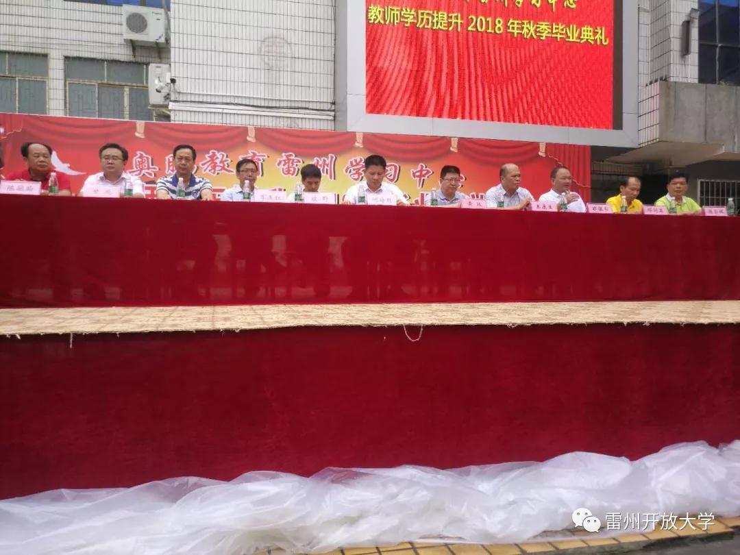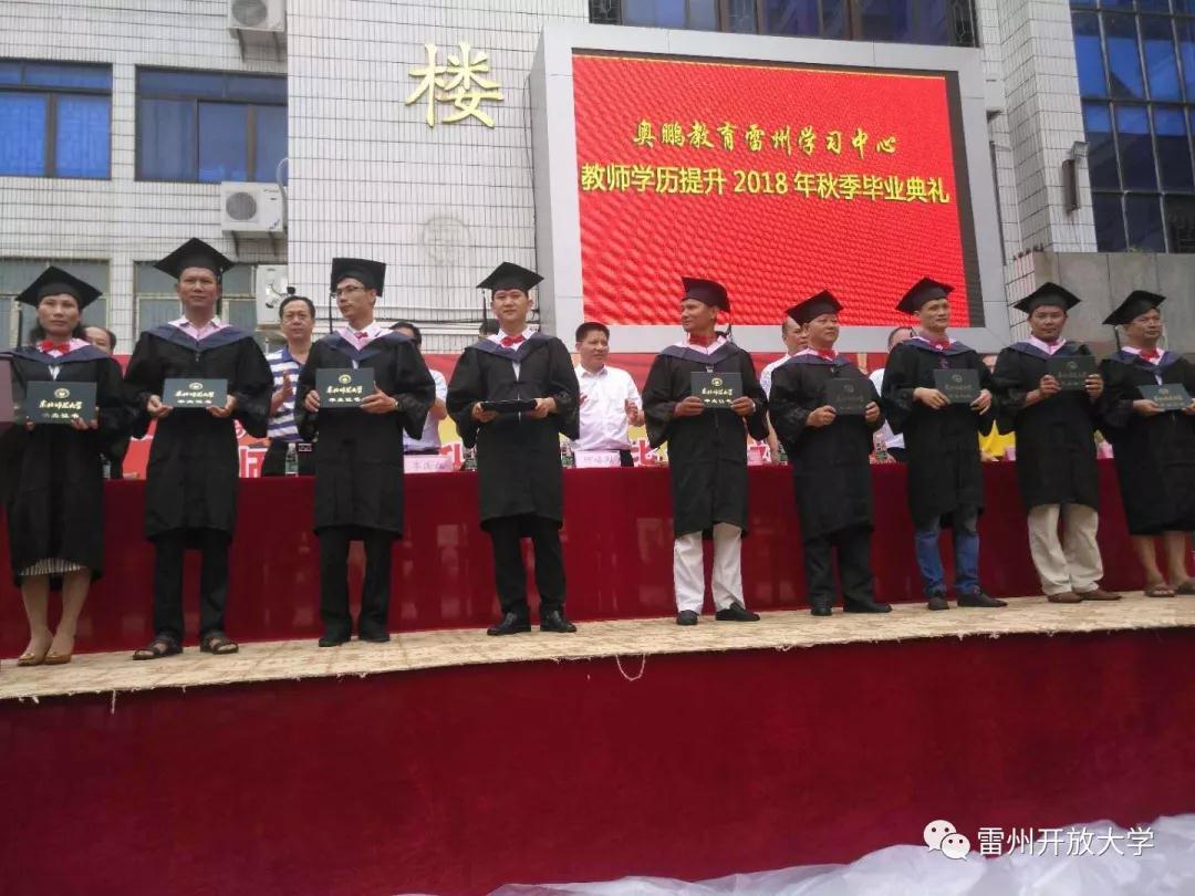 2018年8月15日,奥鹏教育雷州学习中心教师学历提升2018年秋季毕业典礼在雷州开放大学隆重举行。雷州市副市长何培烈、政协副主席牧野,湛江开放大学党委书记、校长李连红、副校长王康生,市教育局局长周坚,奥鹏教育广东运营中心主任黄波、市各中学、中心小学校长及市教师学历提升(东北师范大学)2018年秋季近2000名毕业生参加了会议。