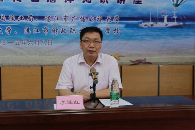 6月8日是"世界海洋日暨全国海洋宣传日",当天上午,湛江市海洋与渔业局和湛江市广播电视大学联合举办的海洋知识教育讲座在湛江电大附属财政中专礼堂举行。市海洋与渔业局、市电大等单位的领导、职工、师生和社区居民300余人参加了此次活动。活动由我校党委书记、校长李连红主特。