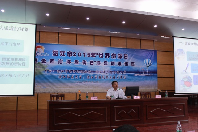 广东省政协常委、广东海洋大学副校长、博士生导师朱坚真教授做了题为《打造21世纪海上丝绸之路支点城市》的专题讲座。朱坚真教授介绍说,湛江市是海上丝绸之路的重要起点和发祥地,与海上丝绸之路沿线国家历史渊源深厚,人文优势突出,合作基础扎实。要加快建设海上丝绸之路经贸合作的前沿平台积极推动与东盟地区产业融合发展,积极扩大双向投资、双向贸易、海洋合作积极打造21世纪海上丝绸之路战略枢纽城市,突破区域和空间限制,加强建设通往东盟的通道、口岸设施和物流体系,促进相互投资,降低贸易成本,促进产业转型升级与优势产业融合发展。朱坚真教授还介绍说,湛江市海洋资源丰富,海洋经济前景广阔,增强全市居民的海洋意识、传播海洋知识、弘扬海洋文化,对于湛江发展海洋经济、建设海洋经济强市的具有十分重要的意义。