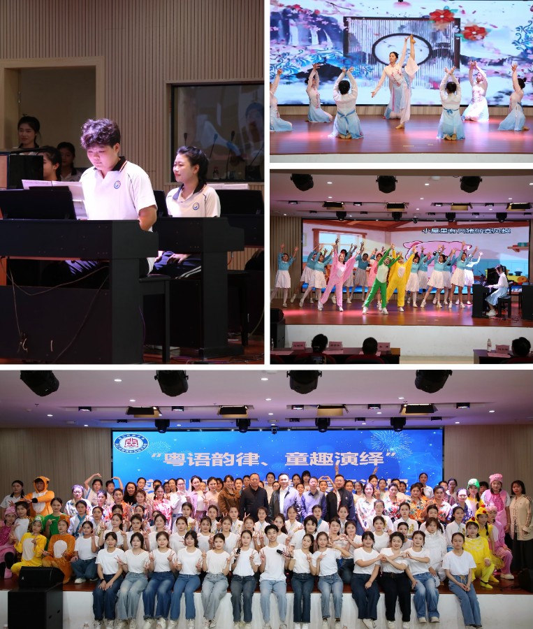 学前教育专业围绕“粤语韵律·童趣演绎”,通过粤语童谣、舞蹈创编等节目,展示学生的音乐综合素养。