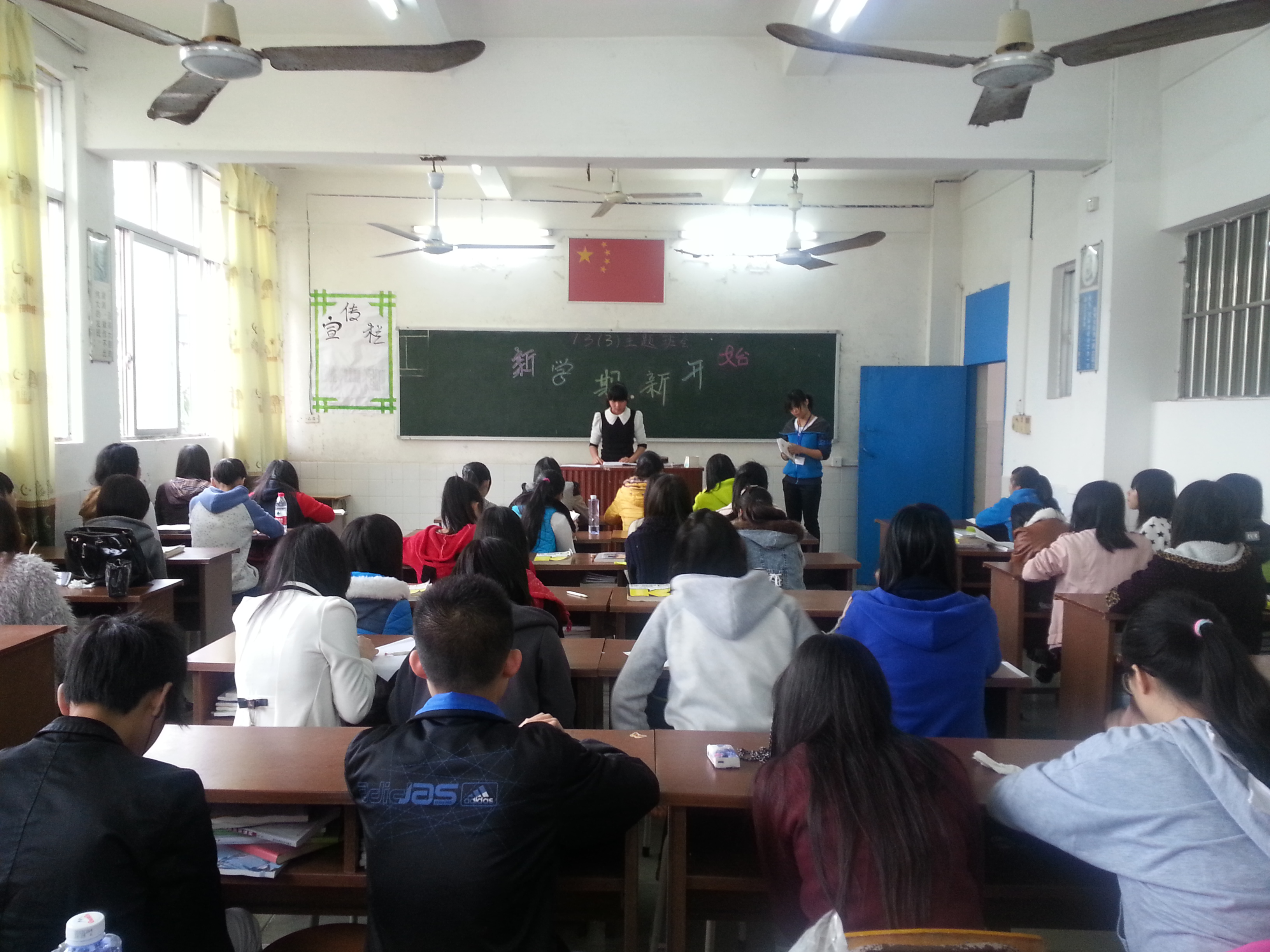 会议时间:2014年03月26日会议地点:财政中专403课室参加人:13(3)会计、涉农、电商物流班全体同学及班主任39人主持人:班长全海燕、何美晔摄影人:班主任周烨会议内容:班长发言--根据当前部分同学缺少创卫的知识,没有意识到卫生的重要性,也没有意识到创卫的影响力,我们国家正在创建卫生城市,为了提高同学们的创卫知识、让同学们意识到创卫的重要性,下面请何美晔、黄今恬、雷晨霞、陈依萍、杨霞、吴诗妮