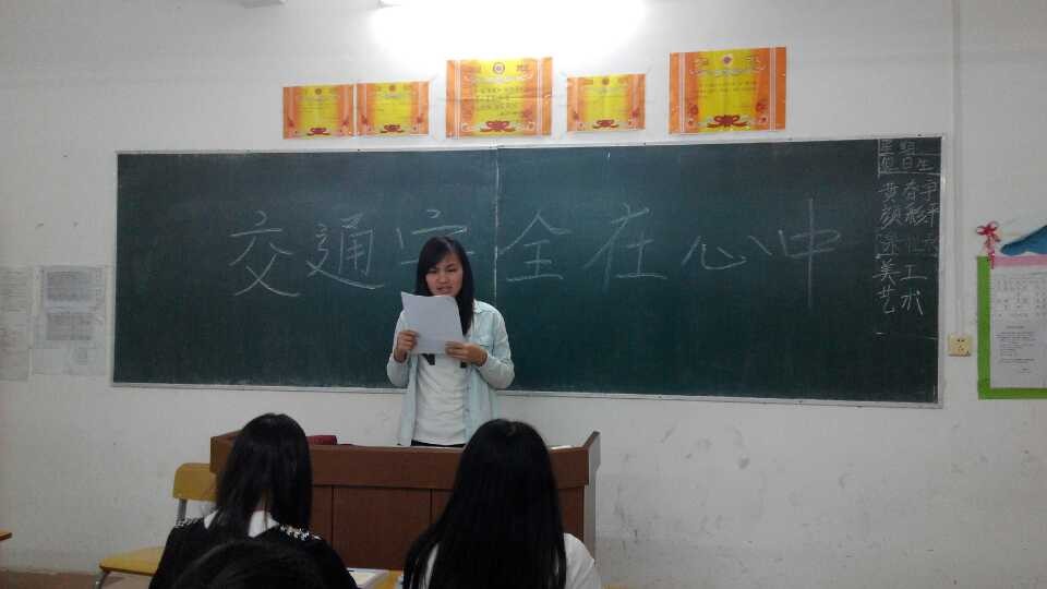 其次,由梁秀丽同学给同学们讲解《骑车安全》《乘车安全》 ,梁秀丽同学由讲解拓展到生活,把同学们的气氛活跃起来,也让同学们更深刻地意识到交通安全的重要性,也让同学们知道骑车与乘车的常识与规则。